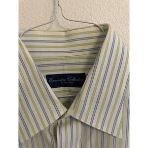 Beautiful and tailored button down from Tom James. Shirt is exclusively made and comes dry cleaned.