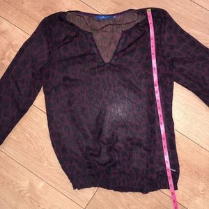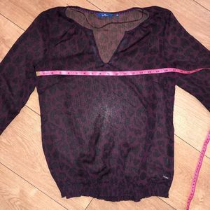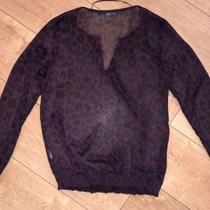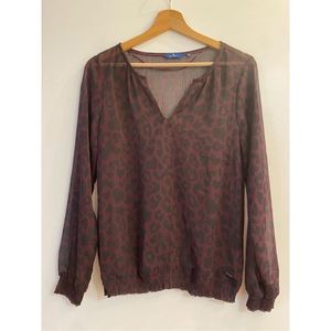 Tom Tailor Maroon Leopard Sheer Italian Blouse Shirt, Size IT 36 / US Small