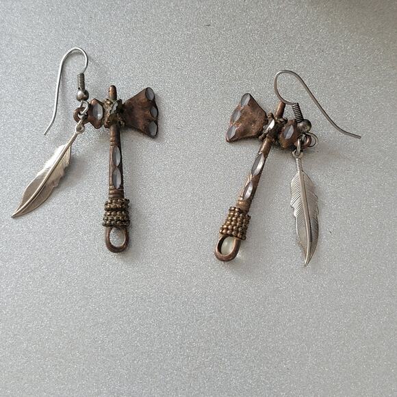 Tomahawk Hatchet Feather Charm Earrings 3”