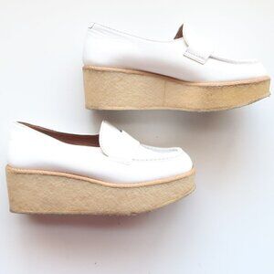 Tomas Maier White Leather Crepe Platform Wedge Heel Loafers Slip-on Shoes Size 6
