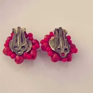 Tomato Red Beaded Cluster Earrings Clip On Tomato Red True Red Nickel Sized