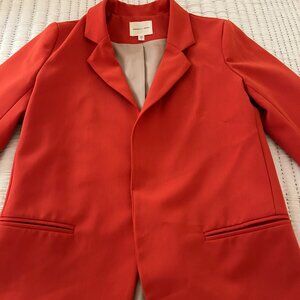 Sized small, lined tomato red blazer. Great for summer workwear paired with linen pants or with jeans and sneakers for more casual activities. No rips, stains or tears. Gently worn.
