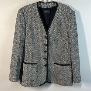 Tombolini Chevron Tweed Black And White Blazer Made In Italy Size 50(12-14)