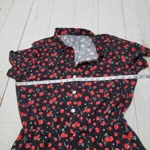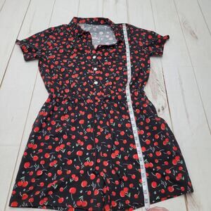 TomboyX black red cherry fruit romper jumpsuit shorts retro
