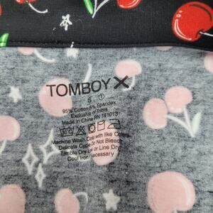 Super soft TomboyX one piece! Black with an allover retro cherry print and buttons on the chest. In like new condition, size small unisex (So runs a bit larger than a typical small). Measurements in photos.