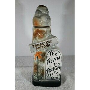 This vintage Jim Beam decanter features a design inspired by Tombstone, Arizona, the famous "Town too tough to die" from 1878. The multicolor decanter is made of Regal China material. It's perfect for any occasion and can be used as a unique decorative piece or for serving your favorite beverages. Bar. Man Cave.