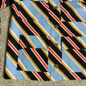 TOMCSANYI blazer with full front button closure, pockets on the outside with striped print.
