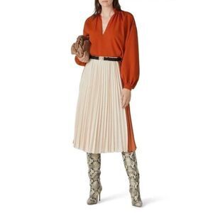 Tome Collective Women's Two Tone Pleated Skirt Burnt Orange Size small s