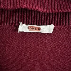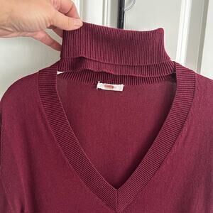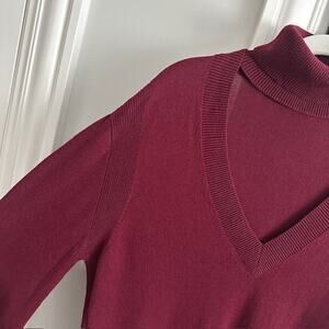 Tome NYC Merino Wool Blend Neck Cut-Out Turtleneck Burgundy Sweater Medium