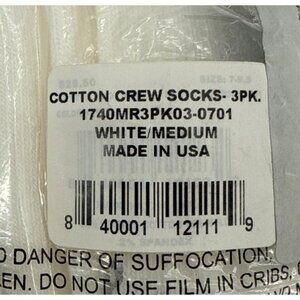 Tommie Copper Copper Cotton Work Sock Mens 3-Pack Medium White Crew Socks