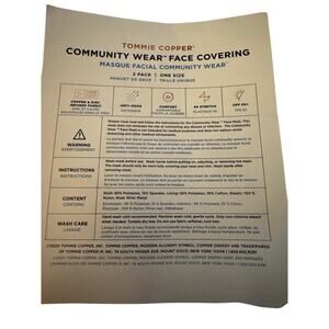 Tommie Copper Face Masks, Black, 2 Pack, One Size, NWT. Patented Copper Zenergy anti-odor fabric technology, Adjustable ear straps and customizable nose bridge for perfect fit, contour chin design prevents slipping while talking, reusable and machine washable. New with tags. Retails for $19.50.
