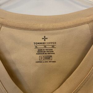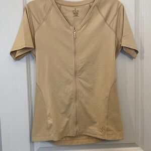 Tommie Copper compression top size extra large. The color is tan in good preowned condition. Normal wear and tear. There is a front zipper that goes all the way down. Super soft top