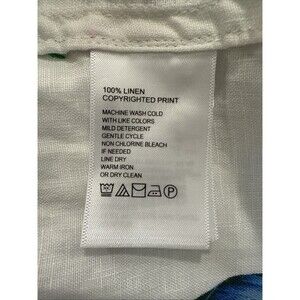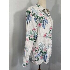 Tommy Baham Shirt Womens L Floral Linen Button Up Blouse Beach Vacation