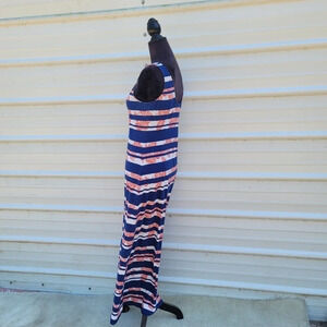 Tommy Bahama 100% Cotton Maxi Dress Womens Blue Red Peekaboo Paisley T-Shirt S