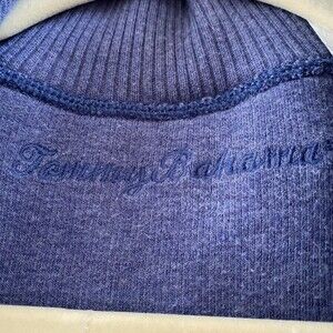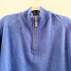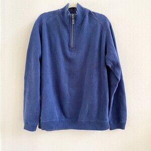 Tommy Bahama 100% Cotton Sz M Blue Reversible 1/4 Zip Mock Neck Pullover Sweater