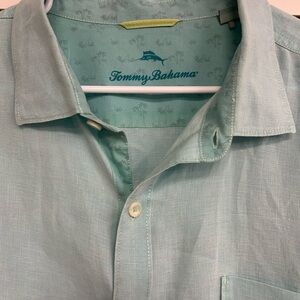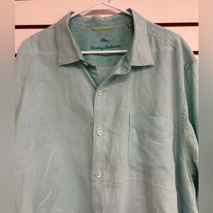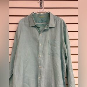 Tommy Bahama 100% Linen Button Down Shirt Blue 2XL Long Sleeve