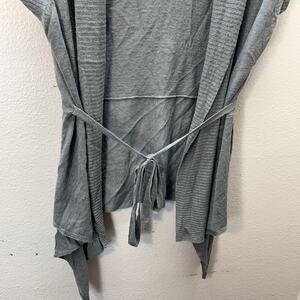 Tommy Bahama 100% Linen Cardigan XS Lagon Minimalist Organic Y2K Short Sleeve waist tie waterfall high low vacation lightweight breathable cover up kimono duster