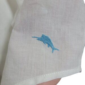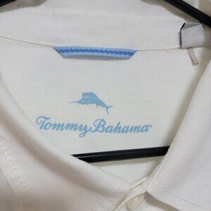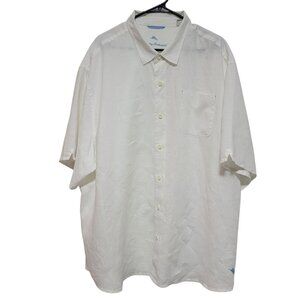 Tommy Bahama 100% Linen Hawaiian Shirt Beach Resortwear White Sz 2XLB Logo EUC