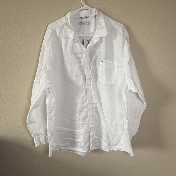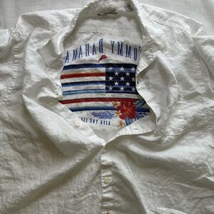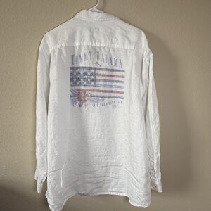 Tommy Bahama 100% Linen Long Sleeve White USA American Flag 1993 Shirt Mens 3XL