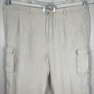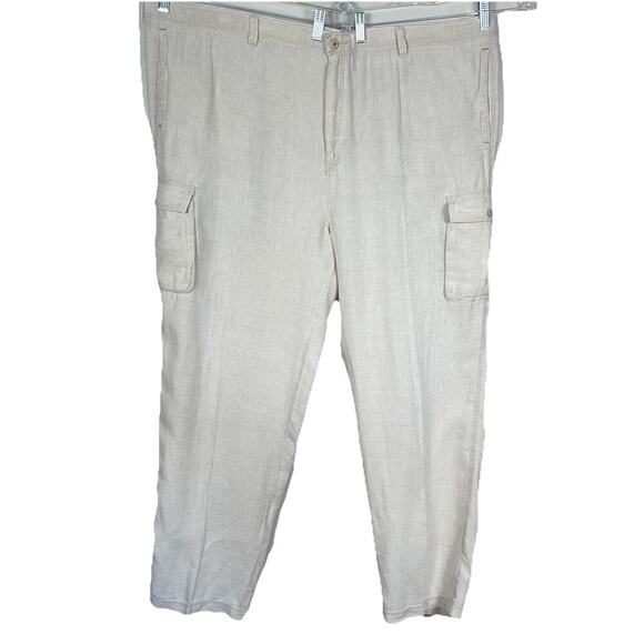 Tommy Bahama 100% Linen Pants Men 2XL (46X33) Beige Cargo Drawstring Relax Beach