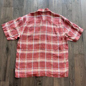 Keywords: Tommy Bahama linen shirt, men’s plaid short sleeve button down, casual shirt, resort wear, vacation clothing, lightweight breathable shirt, men’s size large