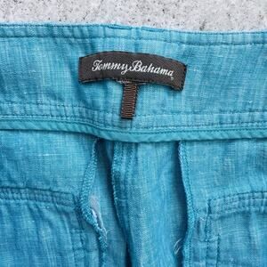 Tommy Bahama 100% Linen Turquoise Wide Leg Pants Size 12 EUC Coastal Preppy