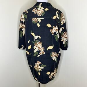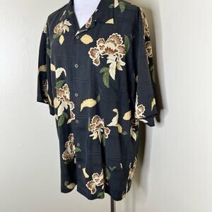 Tommy Bahama 100% Silk Button Up Shirt Large Mens Hawaiian Floral Tropical Black