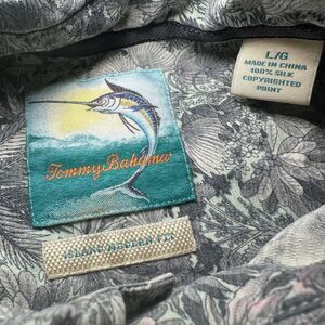Tommy Bahama 100% Silk Button Up Shirt Men's Large Gray Floral Hawaiian Surf