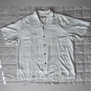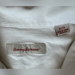 Tommy Bahama 100% Silk Cream Tropical Leaf Embroidered Button Down Shirt - XL