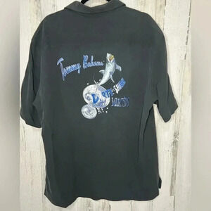 Tommy Bahama 100% Silk Embroidered‎ Shirt Black Size Large