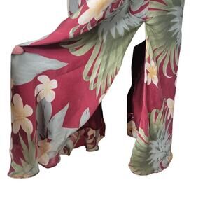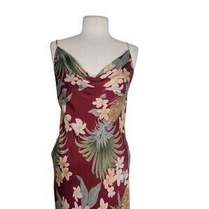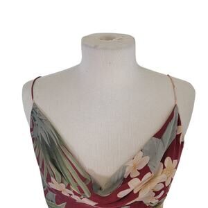 Tommy Bahama 100% Silk Floral Hawaiian Tank Top Maroon Red Maxi Summer Dress Womens 8