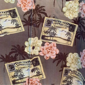 Tommy Bahama 100% Silk Hawaiian Camp Shirt Mens L Bombay Greetings Butter Yellow