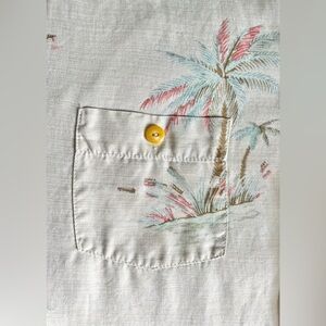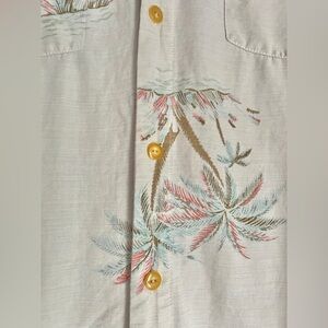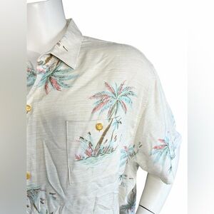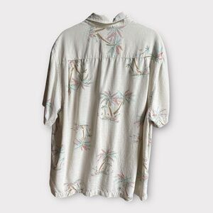 Tommy Bahama 100% Silk ‘Island Modern Fit’ Short Sleeve Button Down Casual Shirt in Off-White Ivory color with Palm Tree Pattern size X-Large