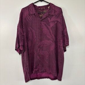 Tommy Bahama 100% Silk Maroon Button Up Short Sleeve Hawaiian Shirt