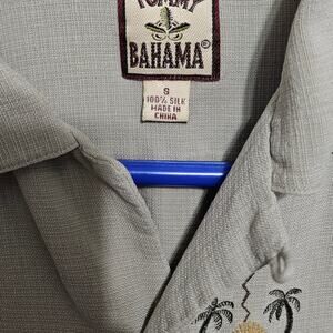 Tommy Bahama 100% Silk Men's Size S Beige SS Button Up Pineapple Palm Tree Print