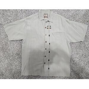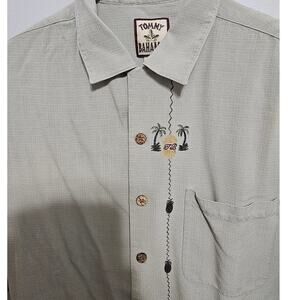Tommy Bahama 100% Silk Men's Size Beige SS Button Up Pineapple Palm Tree Print