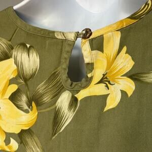 Tommy Bahama 100% Silk Olive Green Tropical Sleeveless Shift Dress Sz S