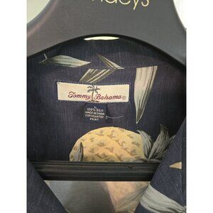 Tommy Bahama 100% Silk Pineapple & Palm Short Sleeve Shirt Men's Large Blue