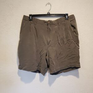 Tommy Bahama 100% Silk Pleated Green Shorts Men’s (Size 40) Tropical Resort