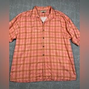 Tommy Bahama 100% Silk Printed Button Down Short Sleeve Shirt Sz Large