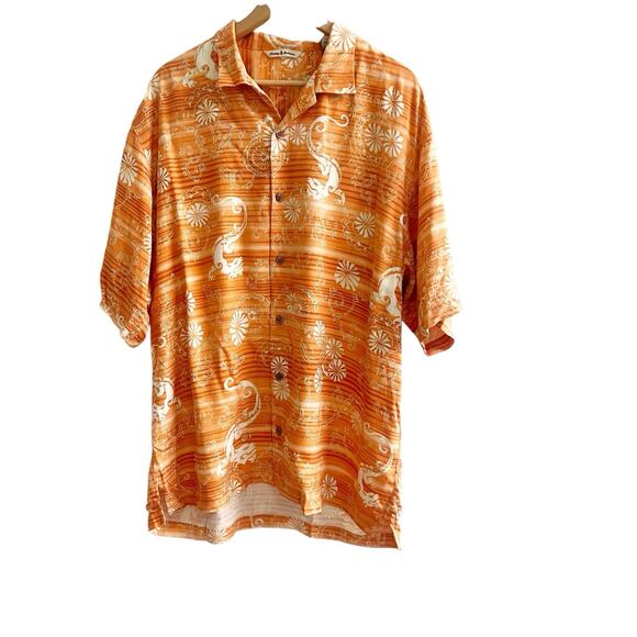 Tommy Bahama 100% Silk Shirt Dragons Asian Print Size Large Cabana
