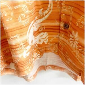 This Tommy Bahama shirt is perfect for any occasion, whether you're going to a party or just casual outing. The shirt features a unique graphic print of dragons, giving it an Asian print. It has short sleeves, a collared neckline, and a button closure. The shirt is made of 100% silk, making it comfortable to wear during any season, summer, fall or spring.