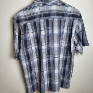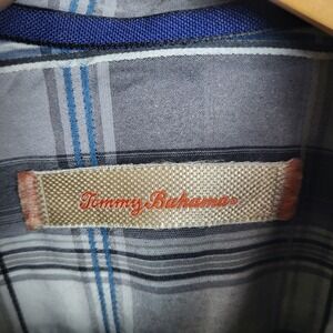 Keywords: Tommy Bahama, silk shirt, mens shirt, button down, short sleeve, plaid shirt, gray shirt, blue shirt, casual shirt, luxury shirt, tropical shirt, resort wear, menswear, large shirt