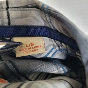 Tommy Bahama 100% Silk Shirt Mens Large Gray Blue Plaid Button Down Short Sleeve