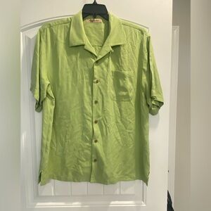 Crafted for comfort and style, this Tommy Bahama Hawaiian silk camp shirt is a versatile addition to any wardrobe. The rich green hue complements a variety of looks, while the relaxed fit ensures ease of movement. Its short sleeves and lightweight fabric make it an ideal choice for warm weather or layering under a jacket.