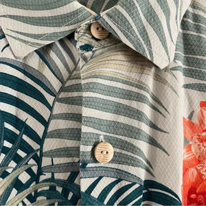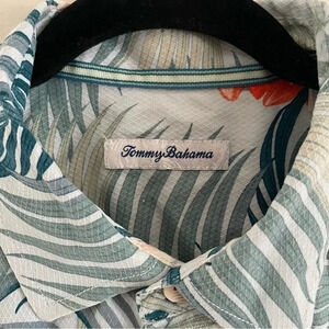 Bright orange, red and green Tommy Bahama shirt sleeve shirt. Made of 100% silk, great to dress up or down. Like new condition.