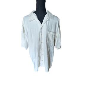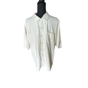Tommy Bahama 100% Silk Short Sleeve Button-Up Cream Shirt | Size L