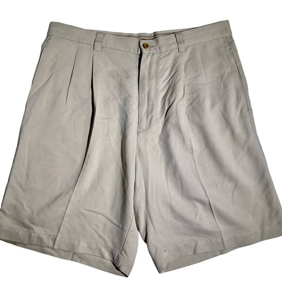 Tommy Bahama 100% Silk Shorts Men's 33W Cream Rib Knit Pleated Buttoned Pockets