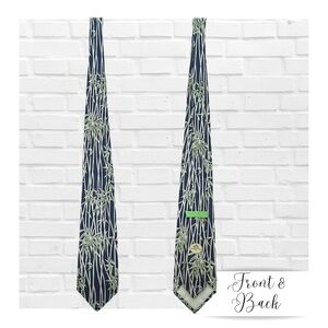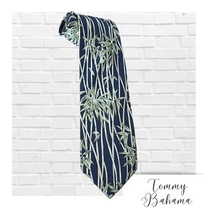 Tommy Bahama 100% Silk Suit Tie Hand Made Blue and Green with Bamboo Print Men's