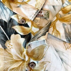 Tommy Bahama 100% Silk Vintage Camp Shirt Floral Hibiscus Hawaiian Button Down